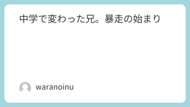まだ中学生の頃の話。今でもはっきり覚えている出来事がある。兄が服を万引きして、それが発覚した。母親が兄を連れて、警察と店に向かった。俺はその場にはいなかった。後日、兄からその時の話を聞いた。普通のテンションやった。「いや、信号赤やのにそのま...