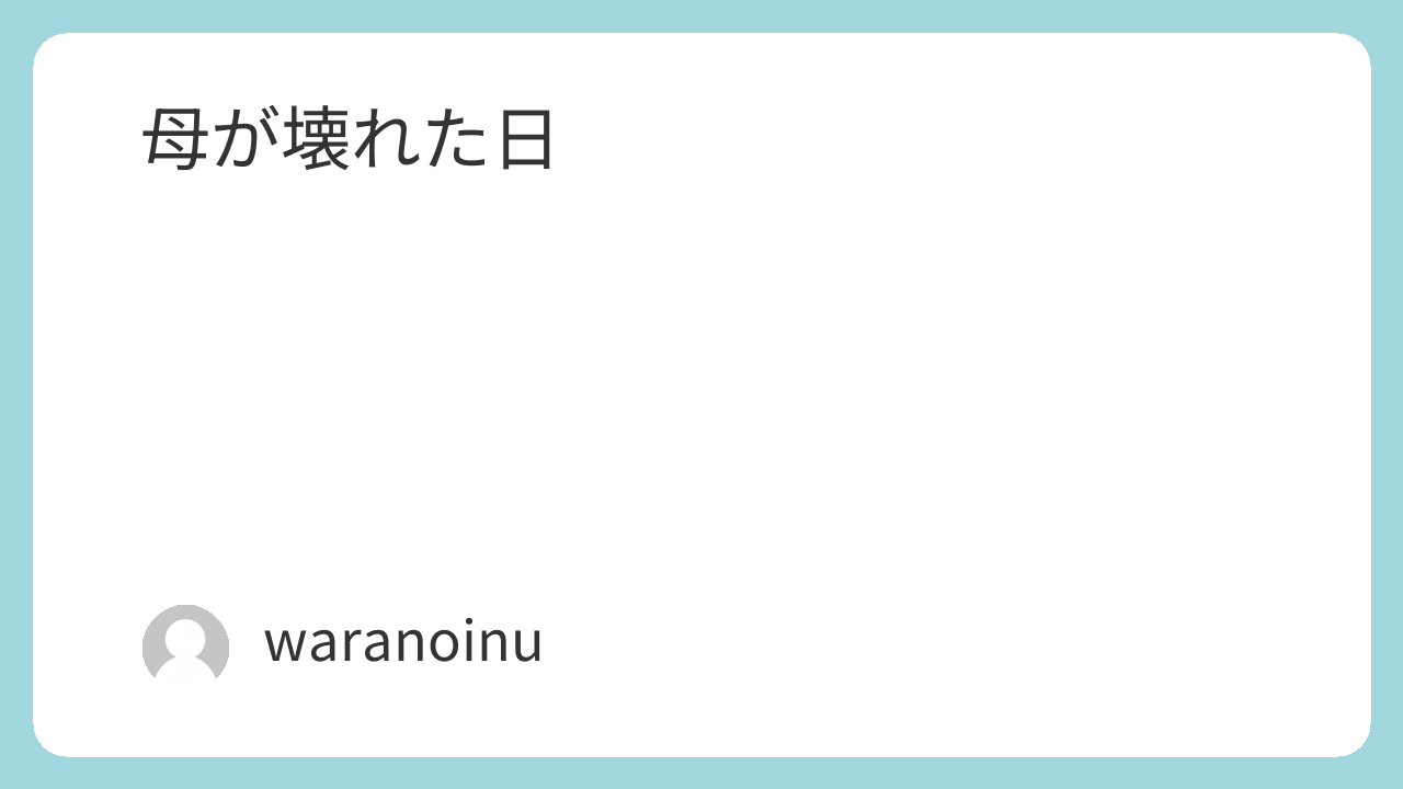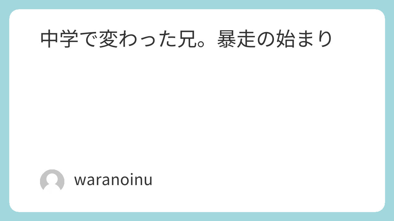 まだ中学生の頃の話。 今でもはっきり覚えている出来事がある。 兄が服を万引きして、それが発覚した。 母親が兄を連れて、警察と店に向かった。 俺はその場にはいなかった。 後日、兄からその時の話を聞いた。 普通のテンションやった。 「いや、信号赤やのにそのまま行ってん」 みたいな感じで、笑いもせず、反省もせず、ただ事実だけを言ってきた。 一瞬、何言ってるか分からんかった。 当時、母親は兄のことで完全に追い込まれていた。 学校からの呼び出し、謝罪、繰り返し。 限界やったと思う。 帰り道、バイパス。 車が普通に流れてる中で、赤信号を無視して突っ込んだらしい。 事故にはならなかった。 でも、その話を聞いた時の空気は今でも覚えてる。 軽く言ってる兄と、頭の中でその光景が浮かんでる自分。 ゾッとした。 その場にいなくても、分かる。 ああ、もう壊れてるって。 そしてこの出来事ですら、 後になれば「まだマシやった」と思うようになる。 こんな事ですら、かわいいと思えるようになっていく。